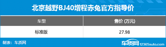 1月27日,北京越野BJ40增程赤兔版正式上市,新车共推出1款车型,售价为27.98万元。同时,官方还推出了多项购车权益。新车在BJ40增程版的基础上增加了多项改装套件,大幅提升了户外越野性能。