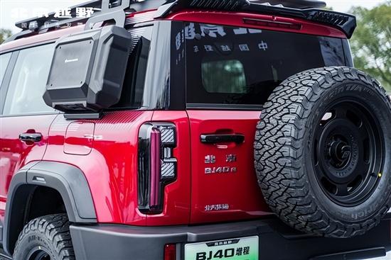 外观方面,BJ40增程赤兔版整体风格更具攻击性。新车采用专属“火焰红”车身涂装,并辅以赤兔主题拉花及双耳式扰流板设计,辨识度较高。作为官改车型,其重点在于越野装备的原厂集成。新车配备了扩展轮眉、铝合金脚踏、高位进气涉水喉、侧爬梯、侧挂机能包以及车顶平台等配置。