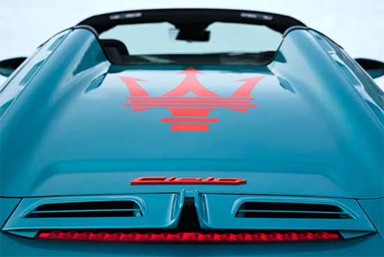 外观方面,玛莎拉蒂MCPURA Cielo FROZEN MAGMA针对车身配色进行个性化调整,采用了名为AI Aqua Rainbow的涂装方案,可随光线流转变换色调。同时,细节还配有专属定制橙色线条、标识和徽标等,共同构成了醒目而独特的视觉效果。20英寸Cyclonic高光黑色Fuoriserie轮毂内部辅以橙色制动卡钳,令冲击力再度进阶。