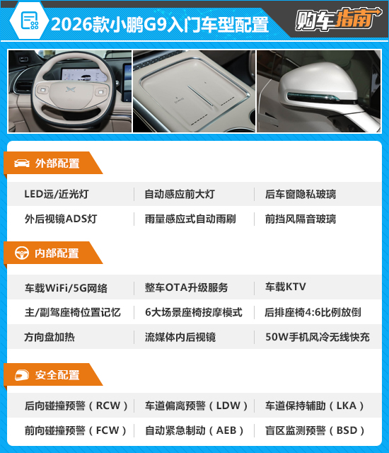 2026款小鹏G9的入门车型配置丰富,在便利性、舒适性、智能化以及安全性方面都有亮眼表现,可谓入门即高配,诚意十足。而此次不推荐的原因,主要在于还有性价比更高的车型。
