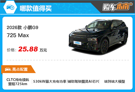 综合来看,2026款小鹏G9 725Max更值得推荐,购车时可优先考虑。
