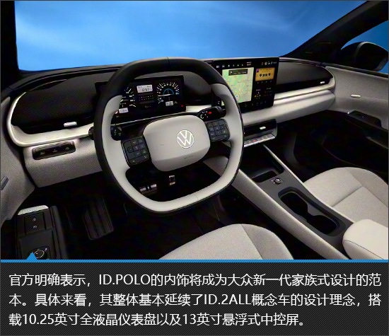 大众ID.POLO的内饰布局以ID.2ALL概念车为蓝本,走的是“简约复古+数字化座舱”的融合路线。虽然是新能源车型,但是其却并未过分追求对于科技感的营造,反而是坚决摒弃全触控交互方案,也算是为自己曾经走过的弯路进行了纠正。后备厢部分,能够在有限空间内实现最大化的利用率已经着实不易,装载能力并不寒酸,实用性表现能够令人满意。