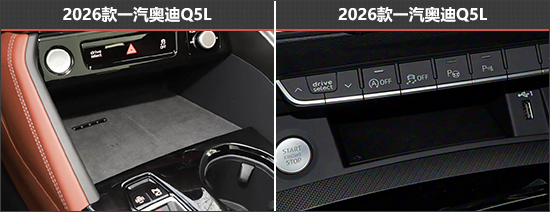 储物空间方面,老款车型换挡机构的前方仅设置了一个小型储物槽,而新款车型升级为双手机槽,左侧还支持手机无线充电,更具实用性。