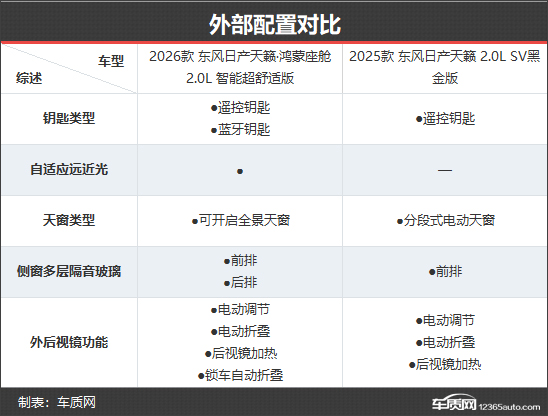 随着国产品牌不断壮大,智能化逐渐成为主流,不少曾经在国内市场风生水起的合资车型被渐渐边缘化,东风日产天籁便是其中之一。为重回巅峰,其携手华为推出了2026款东风日产天籁·鸿蒙座舱(以下简称:2026款东风日产天籁)。那么新款车型相比老款车型都有哪些具体变化?让我们通过本次新老款车型对比来一探究竟。