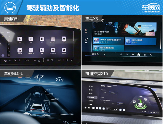 辅助驾驶方面,除奔驰GLC L外,其余三款车型均具备L2级辅助驾驶能力。其中,奥迪Q5L在选装2个激光雷达后,可实现城市及高速路段辅助驾驶,功能上具备更大的拓展潜力。