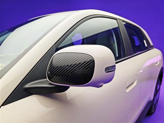 车侧细节部分,外后视镜采用了双色设计,特点还是很鲜明的,而且后视镜这里还集成了智驾小蓝灯。