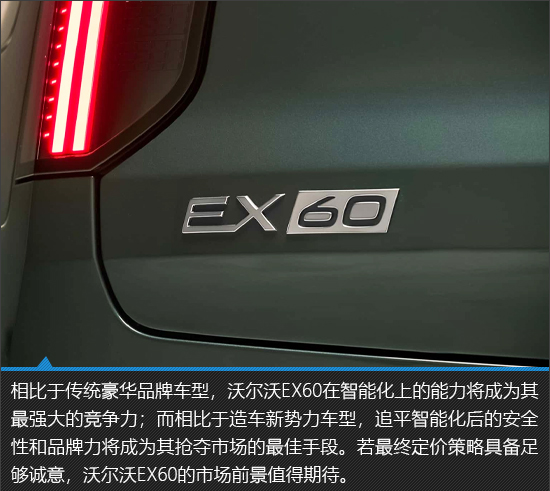 作为沃尔沃品牌在纯电中型SUV市场的重要布局,沃尔沃EX60在设计、安全、智能化以及实用性等方面均展现出较强的综合实力。它不仅延续了品牌一贯的北欧设计与安全基因,同时也在电气化和智能化层面占有一定的优势,可谓是豪华纯电中型SUV市场新标杆。