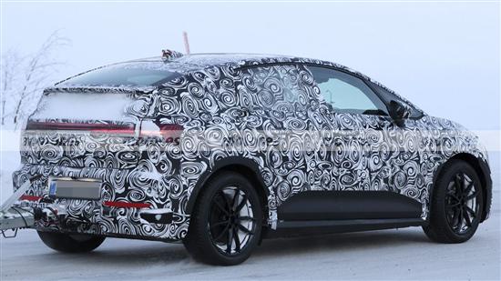 车尾部分呈现出溜背式造型,与奥迪Q4 e-tron相仿的尾灯组为伪装贴纸,并非真实样式。后风挡玻璃位于尾翼上方,这种独特的设计源于经典车型奥迪A2。
