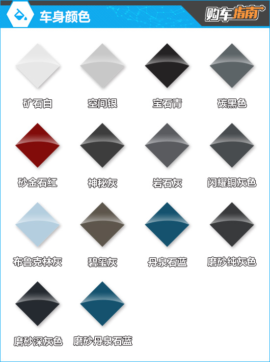 车身颜色方面,新车共提供多达16款配色可选。其中,部分颜色需通过选装获得,且根据配置不同,对应的可选颜色及加价金额存在差异。此外,两款领先型不支持选装个性化定制特别涂装双色方案,更具尊贵感的配色主要保留给中高配车型(由于两款个性化涂装颜色不固定,因此在图片内未作展示)。