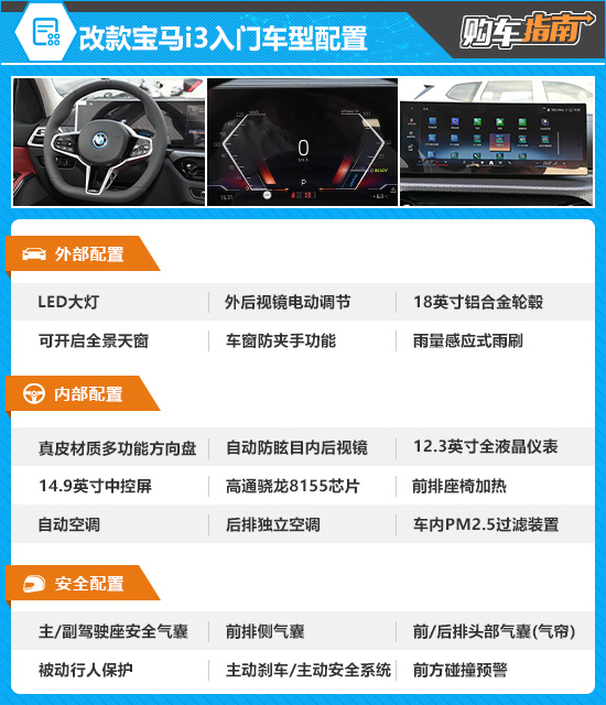 凭借百年沉淀的豪华底蕴与深厚操控基因,宝马在电动化转型的道路上始终坚守初心,既保留了品牌标志性的驾控乐趣,同时又精准适配新能源市场的消费升级需求。不久前,2026款改款宝马i3正式焕新登场,新车依旧基于CLAR平台打造,主要针对配置进行升级。作为宝马品牌电动化战略的核心车型,改款后的宝马i3究竟哪款配置最值得入手?本期《购车指南》为您解答。