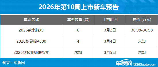 2026年第10周(3月2日-3月8日)上市新车预告