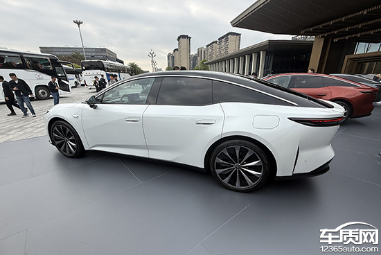 车身侧面线条流畅舒展,采用溜背式轿跑造型,无框车门搭配半隐藏式门把手,进一步强化了运动感与高级感。轮毂最大提供21英寸规格,视觉上更显运动。