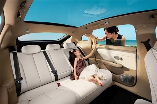内饰采用环抱式座舱设计,配备三辐式多功能方向盘、8.8英寸全液晶仪表和15.6英寸悬浮中控屏,操作界面高度集成化。后排通过剧院式布局和超长腿部空间,搭配Nappa真皮菱形格纹缝线座椅,形成独立的豪华舒享区域。