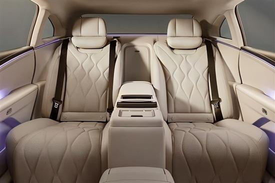 内饰方面,新车同样展现出鲜明的个性与豪华氛围。中控台采用对称式布局,大尺寸竖状中控屏搭配两侧内嵌式液晶仪表与副驾娱乐屏,科技感较为突出。新车提供4座与5座两种布局可选,座椅表面采用Nappa真皮包覆,前排座椅最多支持20向电动调节,并配备腰部支撑、通风、加热以及热石按摩等功能。4座版车型后排配备独立座椅,并在中央扶手处设置娱乐控制屏,可一键开启后排舒享模式,座椅支持大幅后仰,配合电动腿托、头枕与脚托,进一步提升乘坐舒适性。