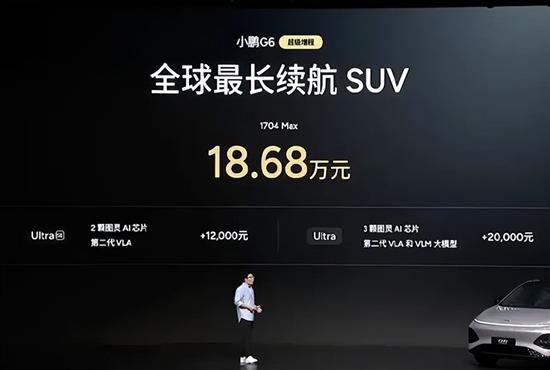 3月6日,小鹏G6超级增程正式上市,推出1款车型,官方指导价为18.68万元。此外,用户可选装两个智能升级包,加购12000元升级为Ultra SE版本、加购20000元升级为Ultra版本。同时,官方还推出至高价值33200元限时权益礼包。