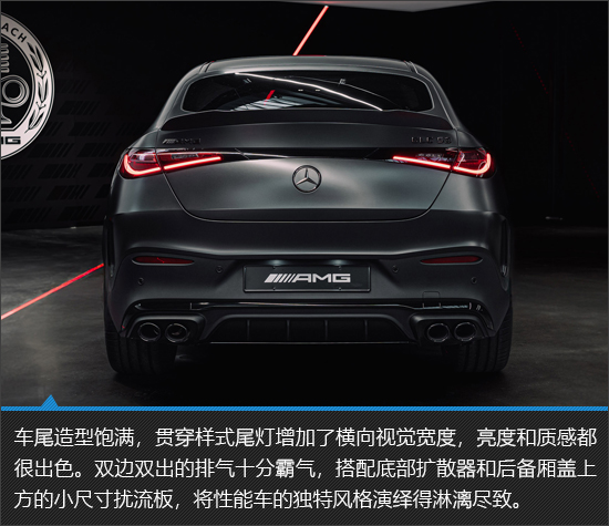 新车外观依旧秉承梅赛德斯-AMG家族化语言,以肌肉感十足的车身造型营造出紧致的视觉效果,并辅以锋利的线条、动感的全车包围,刻画出前卫时尚的氛围。尤其是轿跑版本,溜背造型十分迷人,在凶狠中透露出几分优雅风范。据悉,双边双出排气和排气谐振器经过重新调校,声浪更加浑厚低沉。