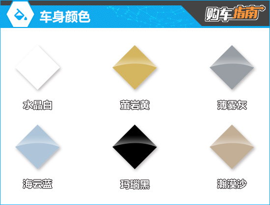 新车提供6种颜色供消费者选择,其中,仅顶配车型可选瀚漠沙配色,但也同时取消了萤岩黄配色。除了常规的水晶白与玛瑙黑配色外,薄雾灰看上去颇具时尚感,较为推荐。