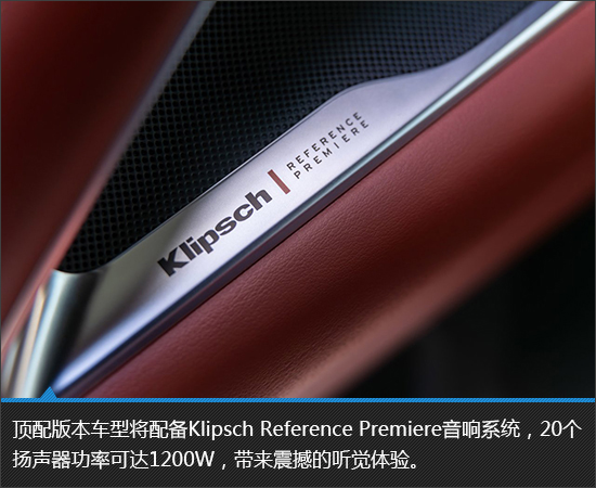 内饰设计比较传统,大面积皮质包裹有效提升了质感。同时,12.3英寸液晶仪表、12.3英寸中控屏以及Klipsch音响系统等配置,进一步确保了内饰整体的高级氛围。