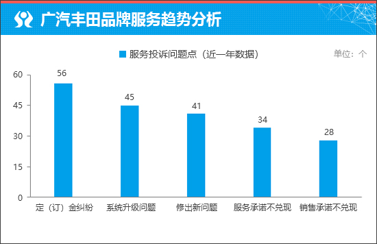 从服务投诉问题点来看,主要集中在“定(订)金纠纷”方面。通过进一步分析可知,投诉问题主要来自凯美瑞车型。