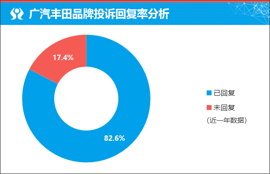 在衡量新车售后服务口碑方面,我们将通过企业对于车主投诉的回复情况进行分析,相对客观地对于新车未来的售后服务口碑有所预判。据车质网数据显示,近一年广汽丰田品牌投诉回复率为82.6%,可见厂家对于车主诉求的重视程度仍存在提升空间。