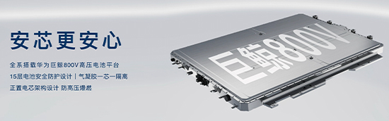 动力部分,两款车型均提供单电机后驱和双电机四驱版本可选。其中,单电机版车型电动机总功率264kW,双电机版车型电动机总功率434kW,标配华为巨鲸800V高压电池平台。