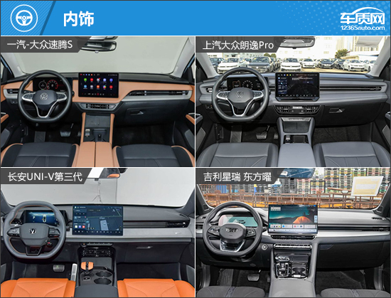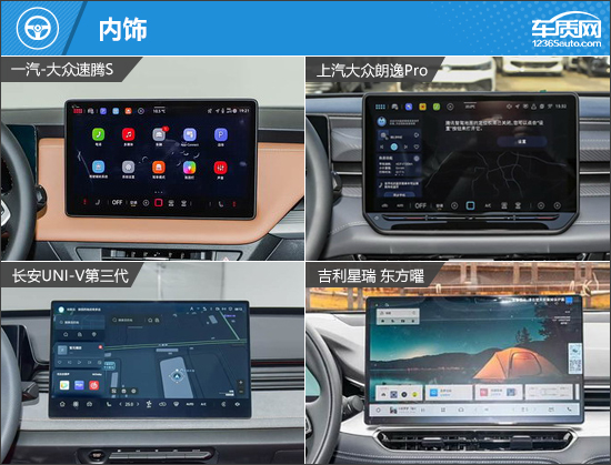 内饰设计方面,四款车型虽然均采用传统风格,但也注重科技感的提升,目前流行的悬浮式中控屏幕没有缺席。此外,四款车型还保留了一定数量的实体按键,便于驾驶员在驾车过程中进行操作。换挡形式方面,一汽-大众速腾S和上汽大众朗逸Pro采用旋转式电子怀挡,另外两款车型则采用电子挡把换挡。
