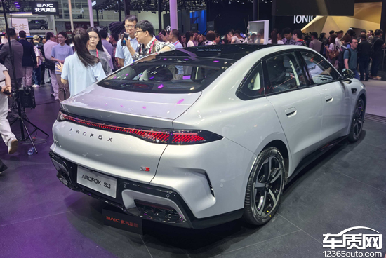 尾部延续贯穿式尾灯设计,内部灯组由多组斜向灯带组成,视觉效果更加立体。同时,新车配备可升降电动扰流板及扩散器造型,在同级车型中具备一定性能取向。