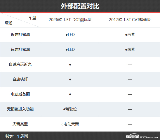 新款车型不只是外观发生了变化,外部配置也进行了大幅升级。首先,远/近光灯光源由老款车型的卤素升级为LED,并且还增加了自适应远近光功能,可以有效增加夜间行车时的安全性。其次,新款车型还增加了电动后备厢、驾驶位无钥匙进入等功能,用车便利性也得到显著提升。