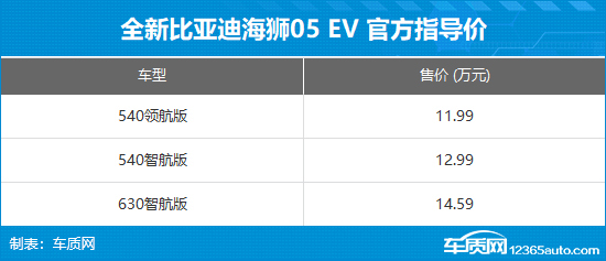 4月20日,全新比亚迪海狮 05 EV正式上市,共推出3款配置,售价区间11.99-14.59万元。同时,即日起下订可享受多重购车权益,包括“5成首付、2年0息,至高5年长贷”、“最高4000元置换补贴”、“全系2年免费云服务”等。