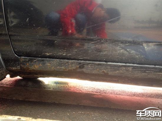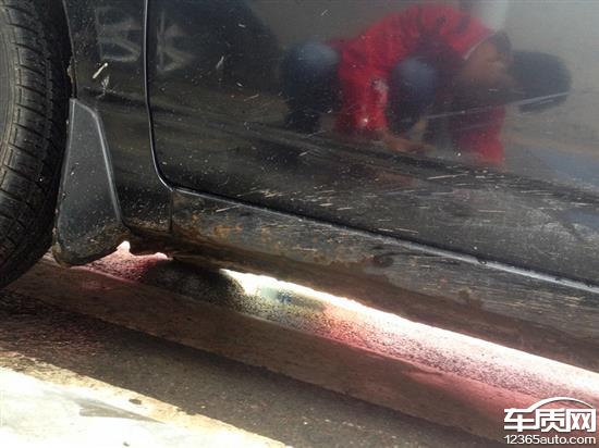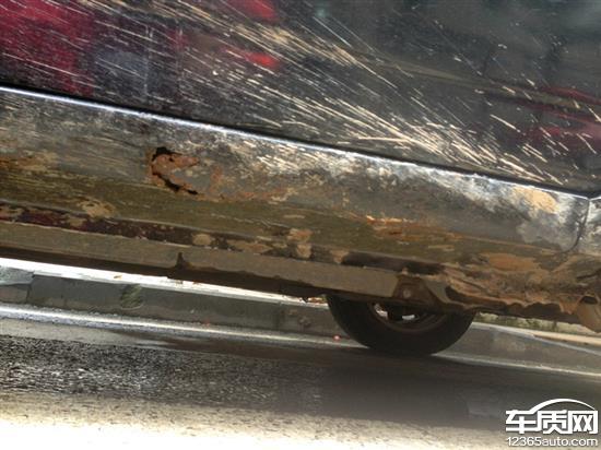 从图片可以清楚地看到,有一面侧裙(副驾驶处)已经从里面锈穿出来了,主驾驶一面也已经生锈,不过还没有锈穿。把车架起来的时候可以看到底盘一侧的侧裙也都有锈烂。在各大车系论坛都有咨询,发现这个问题是比亚迪F3在09和10款的通病。而且在做车门隔音的时候也发现了车门内部已经开始生锈,这都是能够用肉眼直观的看到的,因为车门内部和侧裙内部不像外面,会发生擦挂导致生锈,所以认为这是质量问题,希望厂商能够解决这个问题。