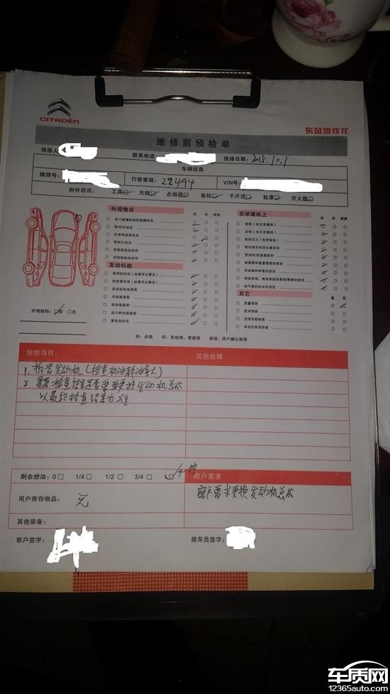 东风雪铁龙厂家回复:对于该车出现的问题,4S店已联系客户沟通解释并提供处理方案。建议客户配合网点的处理方案,若有问题可随时与4S店及客服中心联系。
