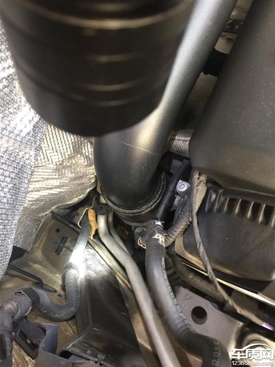 上海大众途观发动机涡轮进气管渗油,都渗到发动机下面电线上了。