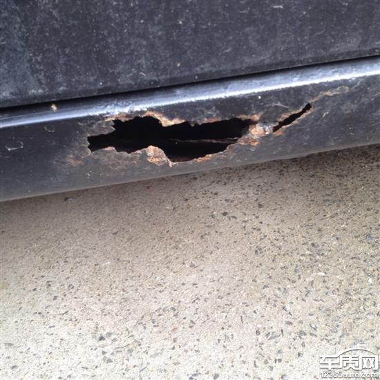 车身两侧侧裙居然锈穿了,铁皮质量烂到这种程度,人家车子到报废了这种地方也没见烂成什么样子,真担心会不会半截断掉。也没磕磕碰碰,油漆自然就起泡了,然后就像树皮似的干裂掉块了。车门下角也真是奇怪,这种地方也能生锈,希望车质网及比亚迪售后能给解决下这么问题,万分感谢!另本人在浙江舟山,能就近维修最好了。