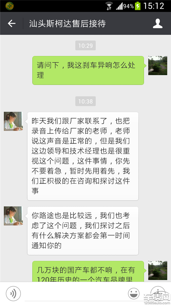 本人于2015年12月19日已向车质网投诉过车辆刹车异响的问题,可是没有接到任何一个斯柯达工作人员的解释电话!甚至之前还说刹车异响是正常现象!试问一下,一个号称有着120年汽车制造经验的厂家,在对待刹车这么重要的地方既然说异响是正常,这其中还隐藏着多少我们看不到的问题呢!再问一下,连国内才有区区十几年制造历史的汽车厂家都没出现刹车异响这个问题,为什么一个号称120年制造汽车经验的厂家出现刹车异响,甚至还视为正常现象!这实在让我们消费者感到可怕!希望车质网能为我们维权,保障我们的权益。谢谢车质网。