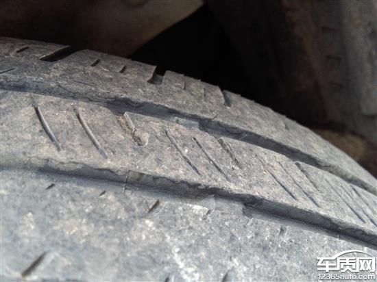 购车半年多,二保时发现两前轮内测吃胎特别严重。跑了8500公里,内测胎面已经没有花纹了,外侧如新。磨损到磨耗标记位置了。4s做四轮定位还收费,因时间紧,没有处理。现已9000。