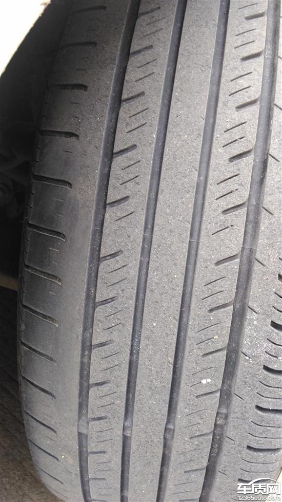 7200公里的时候车胎就吃成如图上这样了。打400电话一个男的还没耐心态度差得很。去4s做了4轮定位方向转向现在是打死不回,不打死回的很无力,方向盘很重。