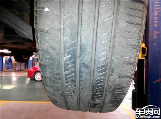 首先,是我自己在第三次保养的时候发现的吃胎问题,首保,二保4s的人也没有发现问题,不知道是有意忽视还是他们的工作不到位。其次,我已经在官方的投诉电话投诉过一次,给我的答复是这吃胎不算严重,真心想问一句,你们心目中的严重是什么概念,难道要车主因为轮胎问题出了事故,这才是你们心目中的严重吗?最后,听朋友说可以在这里提出投诉,所以我过来了,希望有用,我会坚持在不同的途径进行我的维权的.图是同一辆车的轮胎,严重的是前面的,不严重的是后面的。