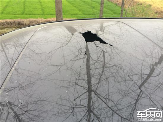 乡镇公路上行驶过程中天窗突然碎裂,确认周边无货车行驶,无行人,无高空坠物。