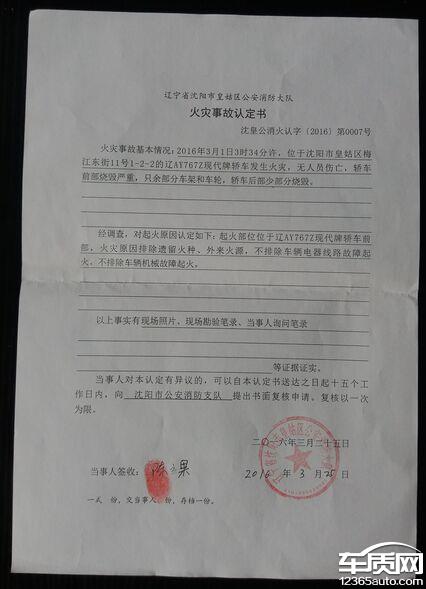 北京现代瑞纳无任何改装车辆自燃2016-03-12车型:2014款 1.4L 手动 智能型GLS 三厢