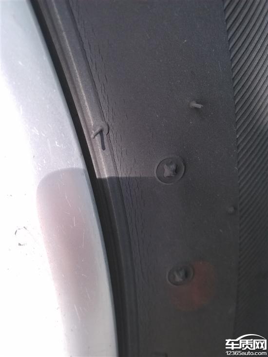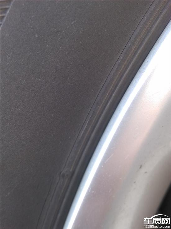 别克昂科拉普利司通轮胎(4条)内外侧壁靠近轮毂处整圈都有裂纹,存在爆胎安全隐患。