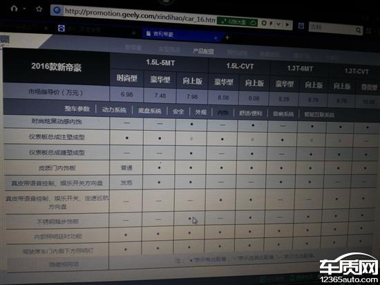 吉利帝豪中控材质不同 官网搪塑实际注塑2016-07-29车型:2016款 1.5L 手动 向上版 三厢