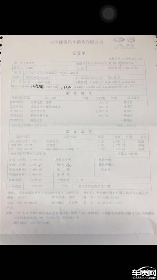 投诉编号:【152321】 投诉时间:2016-08-08 17:07 投诉品牌:一汽-大众 投诉车系:高尔夫 投诉车型:2012款 1.6 自动 舒适型