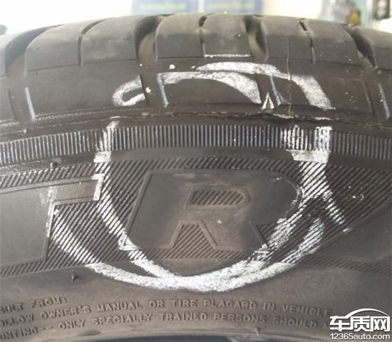 左前轮轮胎内侧加压后有问题区域有很多气泡冒出,表面却无损伤。厂家鉴定说是人为。