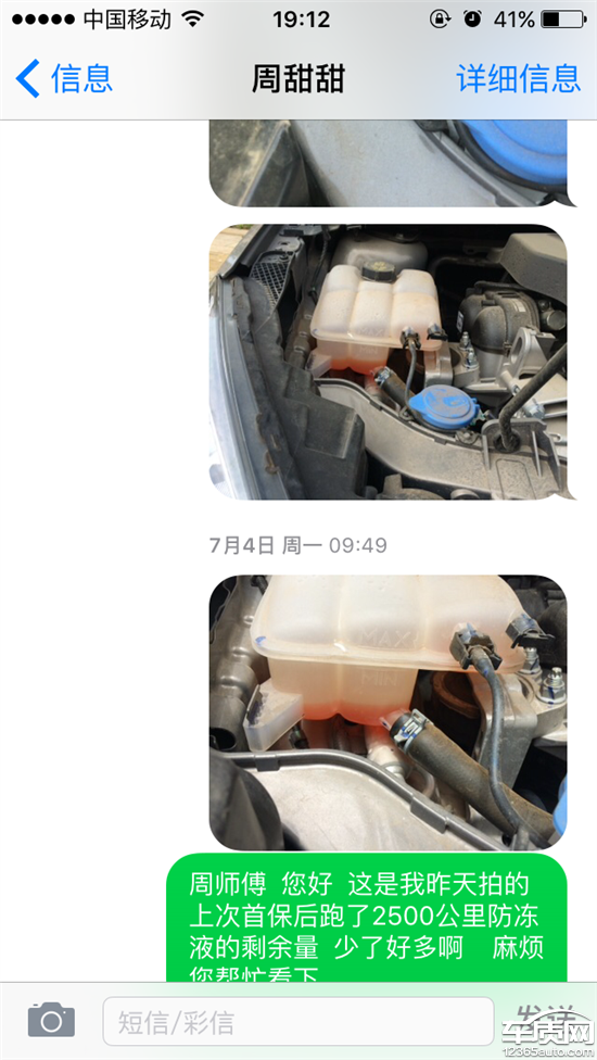 提车后便发现防冻液消耗异常,与4s店沟通被告知是正常,让等首保的时候检查。16年4月25日首保的时候售后周师傅说帮我提交异常报告,直到8月11号我再三询问才通知我去店里检查。目前已拆开发动机,4s店已说明是发动机质量问题,厂家只同意维修不愿意更换发动机总成。新车出现发动机重大问题,却只答复给我维修大修发动机。附有图片,目前车仍在4s店,附近图片有与经销商沟通短信截屏。