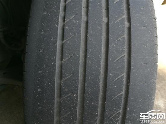 早大半年一直都听说有吃胎现象,当时也收到4S电话让回店更换螺丝,说可以解决。网上所传吃胎现象,并且把前后胎对调了,也另外做了四轮定位、动平衡等(这两项还是自费(⊙﹏⊙)b),以为完全解决了吃胎问题,所以后来一直没有观察。直到前天车友结婚,一大批车主集中谈天说地,分别看了不同车主的车,看到我的车时,竟然还在吃胎!当时就震惊了!内侧吃胎非常严重!!