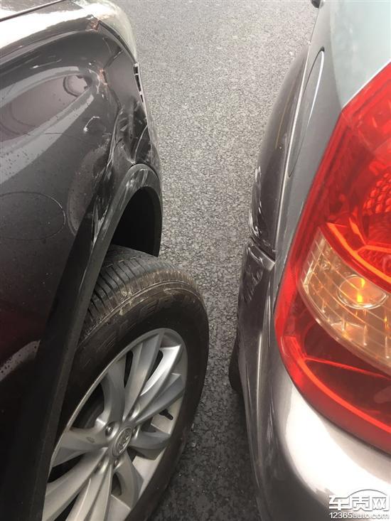 9月30号上午10点左右,我老婆开车变道至左转向路(变道时脚都踩着刹车,老婆为新手),与前方现代途胜车距判断误差,刮蹭到途胜左后方(对方车辆为停止状态),当时下车后检查车辆为简单擦碰并未到注意车轴已断,报警及报保险后(因当时路上车辆较多,通话时告知警察与保险人员只是轻微擦碰,所以交警与保险人员都未到场,叫双方去快速理赔中心),途胜车主因有事,就约定下午去快速理赔中心定损,后上车启动车辆,发现方向盘打不动,下车仔细检查,发现轴断了,之后打保险公司电话,将车辆拖至4S店。
