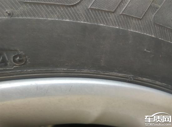 别克昂科拉普利司通轮胎龟裂,4条普利司通轮胎侧壁靠近轮毂部分出现龟裂。