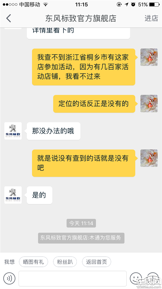 东风标致厂家回复:您的信息我们已经收到,将尽快转交给经销商处理,建议您尽快联系您的经销商来解决您的问题。祝您生活愉快!东风标致客户服务热线:400-8877-108。