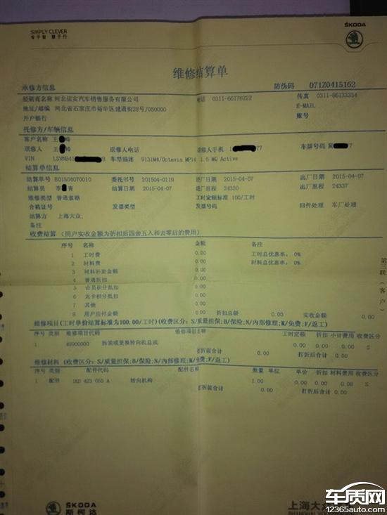 投诉编号:【171265】 投诉时间:2016-12-07 08:18 投诉品牌:上汽大众斯柯达 投诉车系:明锐 投诉车型:2013款 1.6L 手动 逸致版
