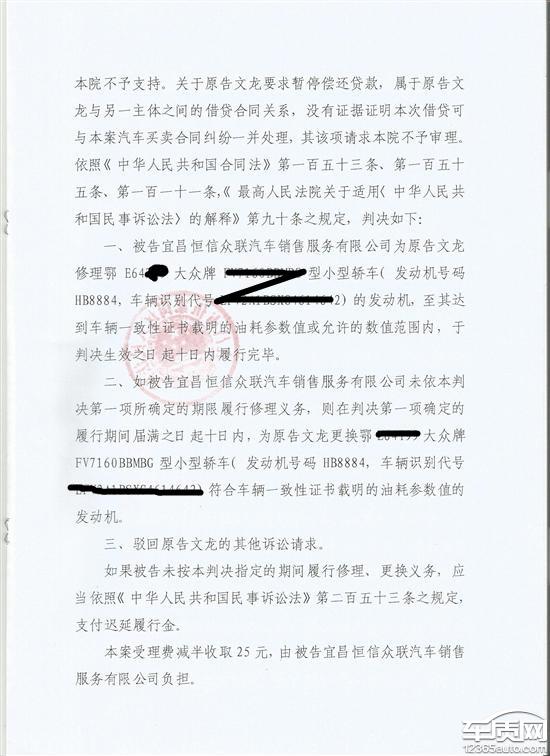 我于2016年6月24日向宜昌市汽车销售服务有限公司购买了一台一汽大众捷达2015款1.6手动质惠版,于2016年7月10日(当时行驶1500公里)就打电话向4S店销售人员以及厂家反应,油耗增高一直没有得到解决,没有办法只好将车开回宜昌找宜昌市汽车销售服务有限公司理论,没有结果4S店不予理会,还要动手打人.我的车在质保范围,符合退换货规定,有法可依,有据可查,说明书和合格证上标注的市区油耗百公里8.0升,郊区油耗百公里4.8升,综合油耗百公里6.0升,不管是哪一项都无法达到标准,和实际投放市场客户反映的油耗也差别好大。现在我的车综合油耗8.9左右,市区油耗10-11左右,郊区油耗7.5左右。2.我的车最高时速达不到185KM,以及上坡发动机明显动力不足。因此要求宜昌市汽车销售服务有限公司,一汽大众汽车有限公司赔偿我全部损失,一;要求宜昌市汽车销售服务有限公司和一汽大众汽车有限公司共同承担赔偿责任或者三包责任。二;要求宜昌市汽车销售服务有限公司暂停一汽大众金融的还款项目,待事情处理好后再继续还款。三,要求更换新车或者发动机。现在法院判决了要维修更换发动机,厂家依然不处理,不管消费者利益。法院判决号为(2016)鄂0503民初1656号。